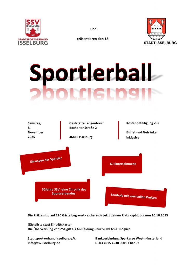 Am Samstag den 8. November 2025 findet der 18. Sportlerball statt.